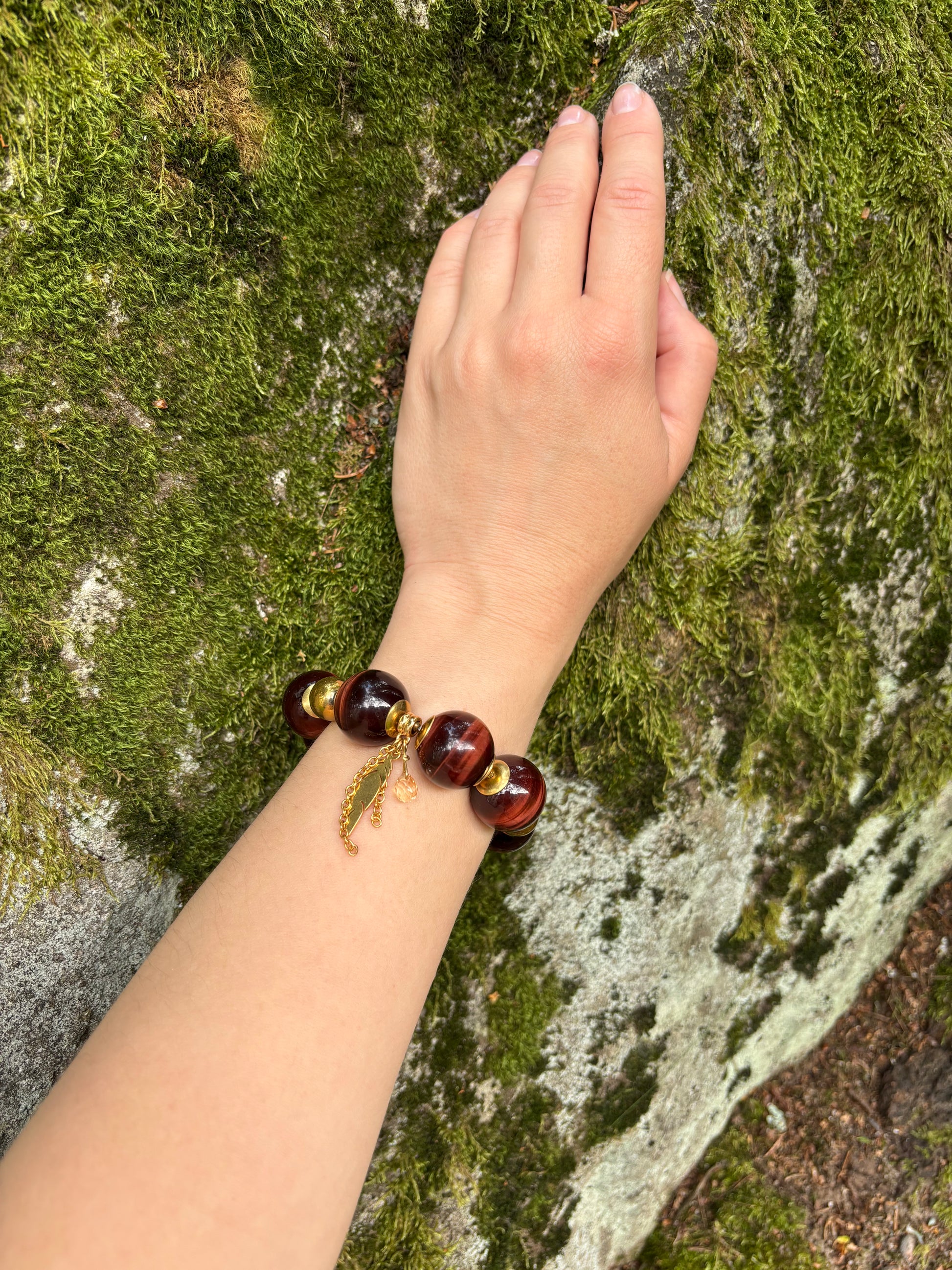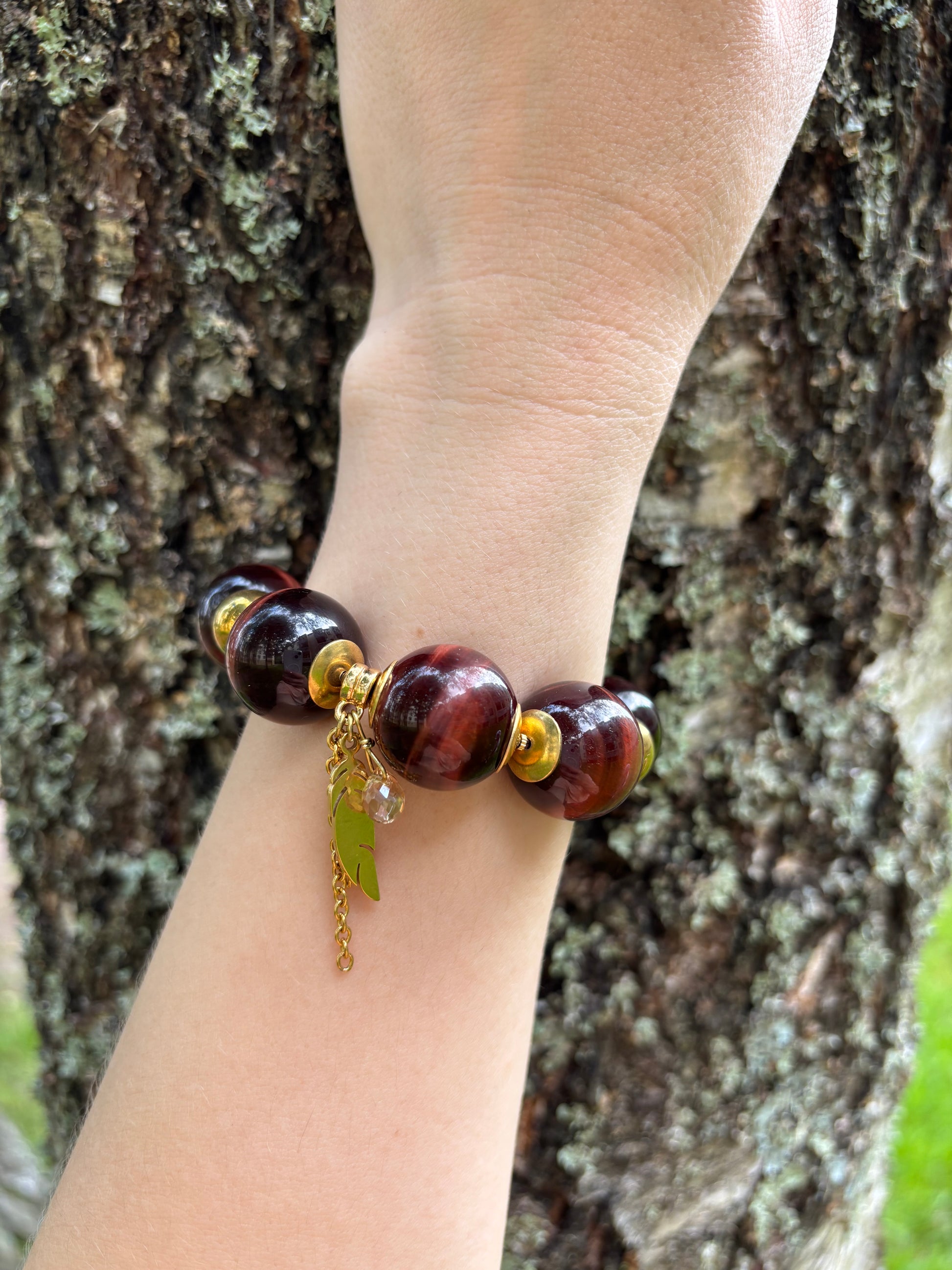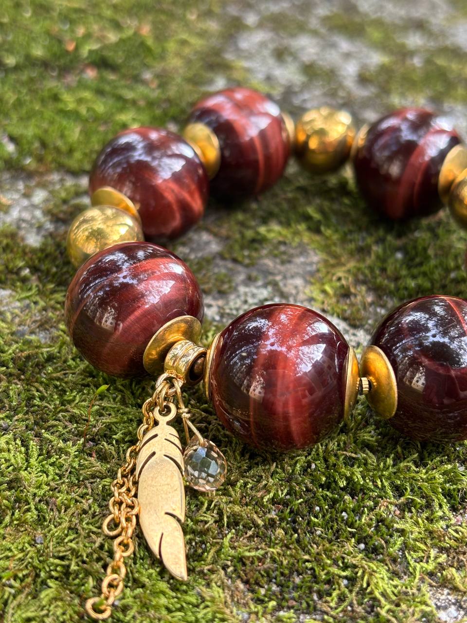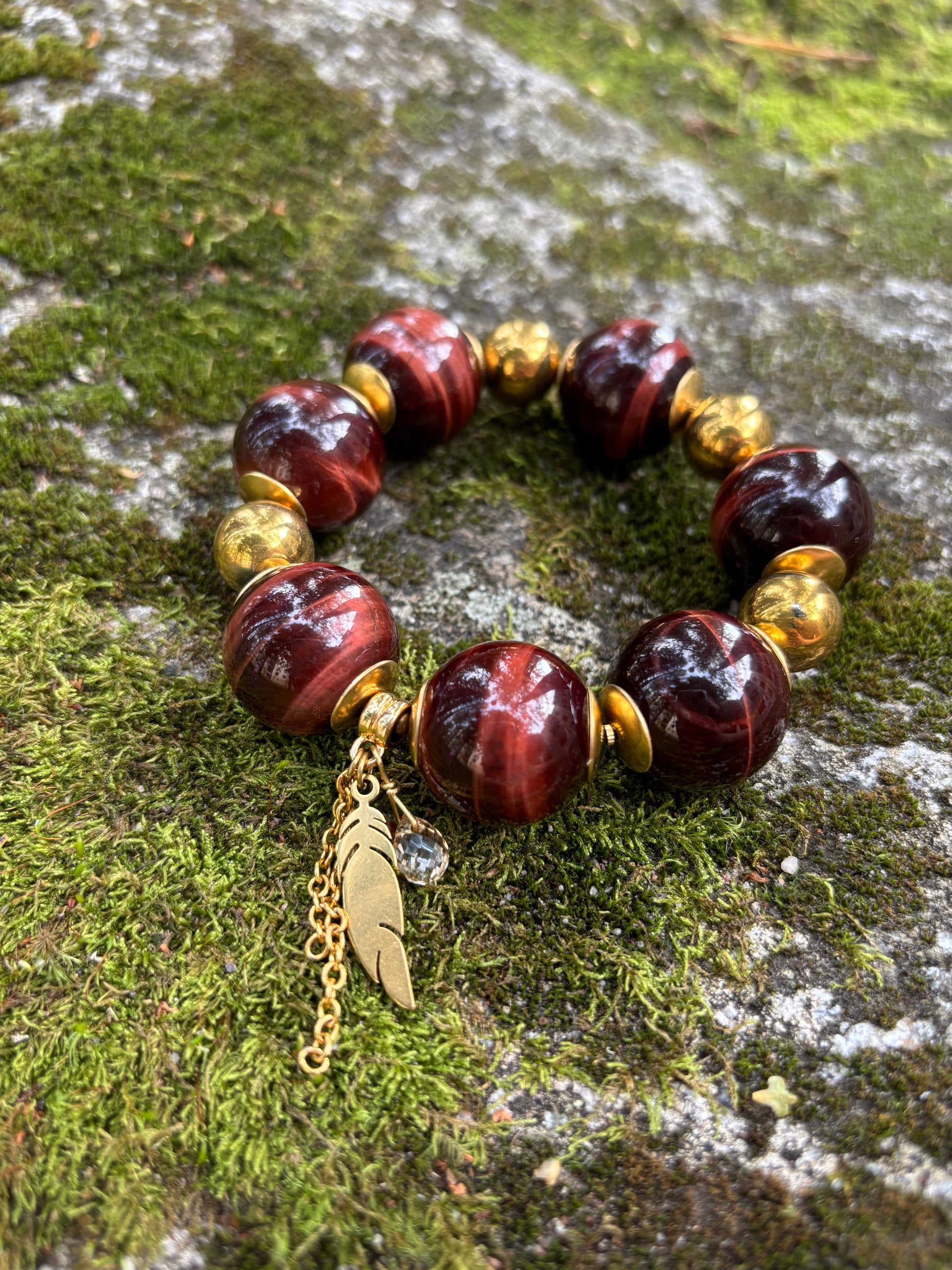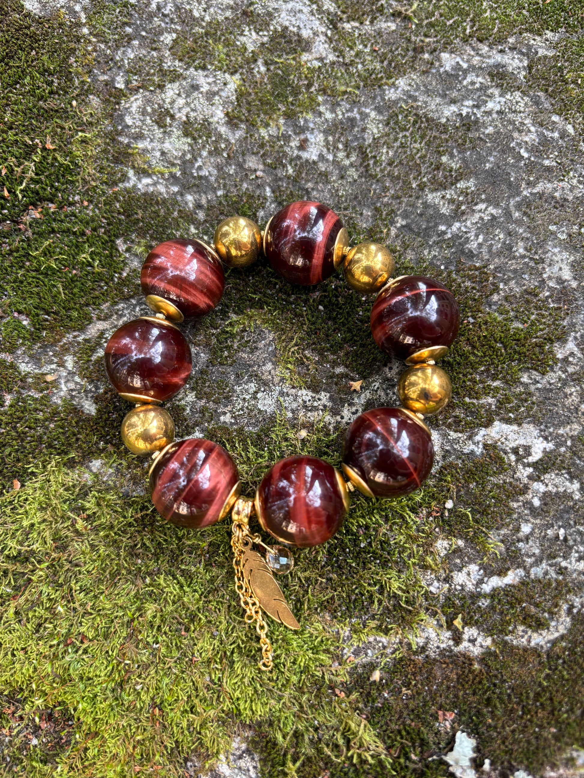 häränsilmäkvartsi (punainen tiikerinsilmä) ja galvanoitu hematiitti.