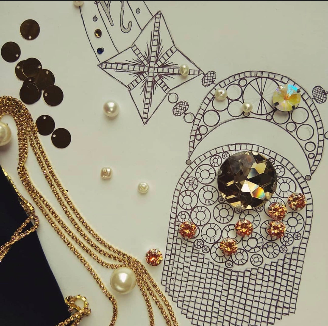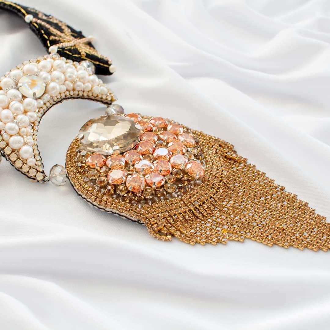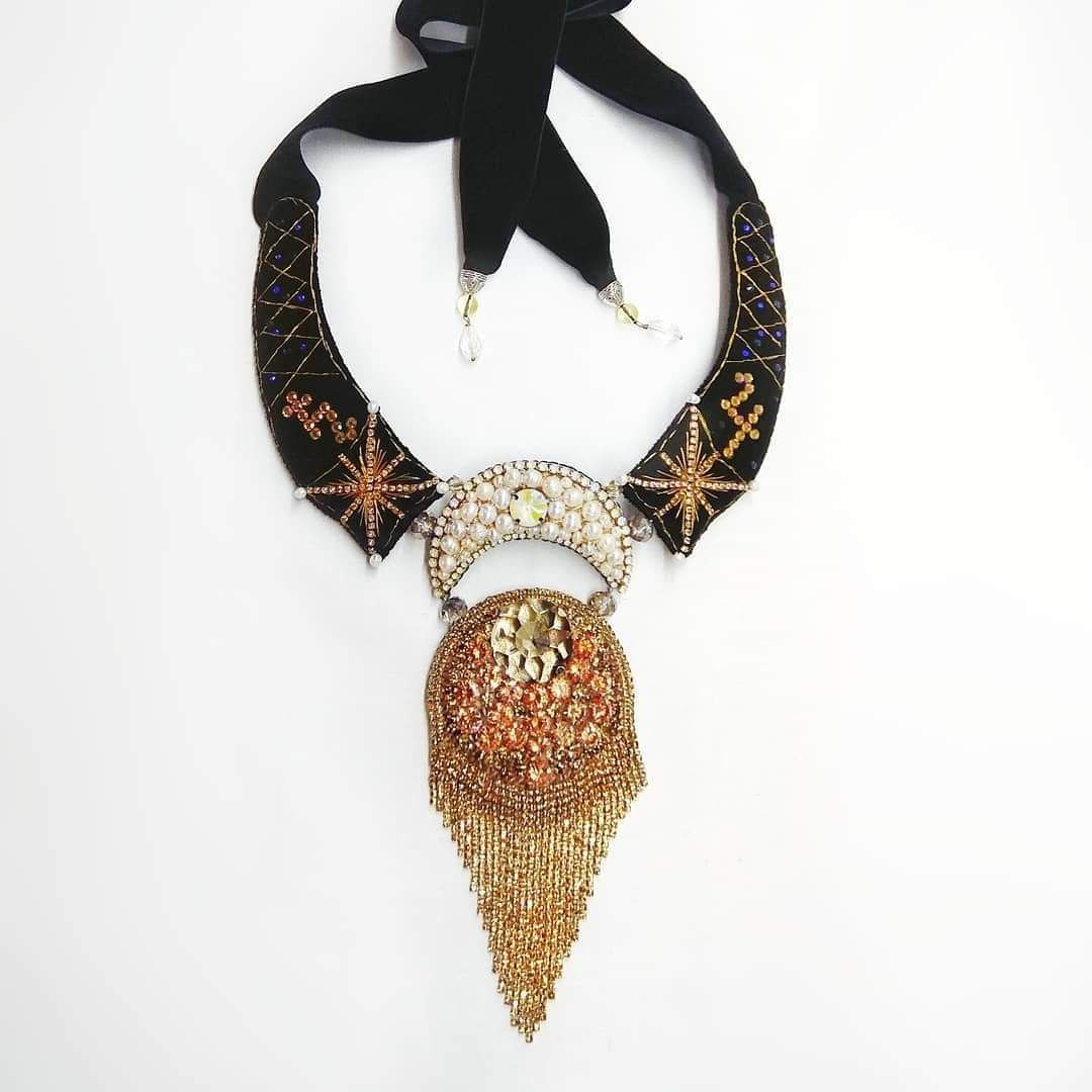 Tämä käsin kirjailtu kaulakoru on syntynyt hiljaisesta dialogista tähtien kanssa.