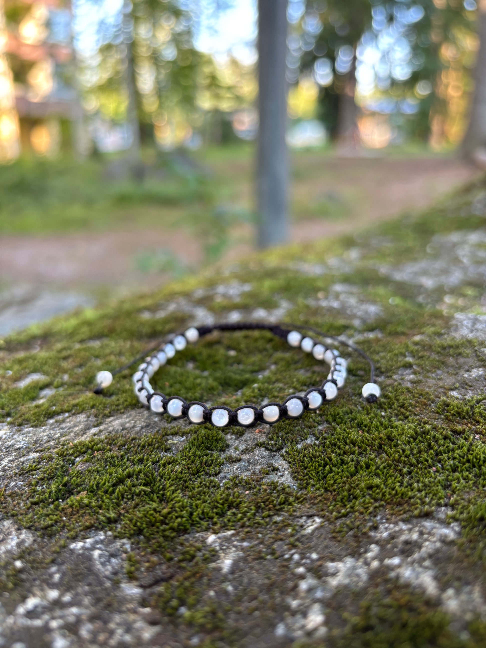 Pehmeys & Naisellinen voima — Shambhala-rannekoru valkoisesta helmestä