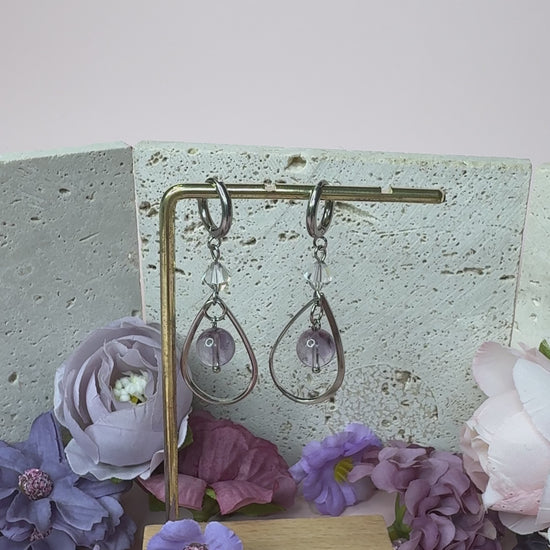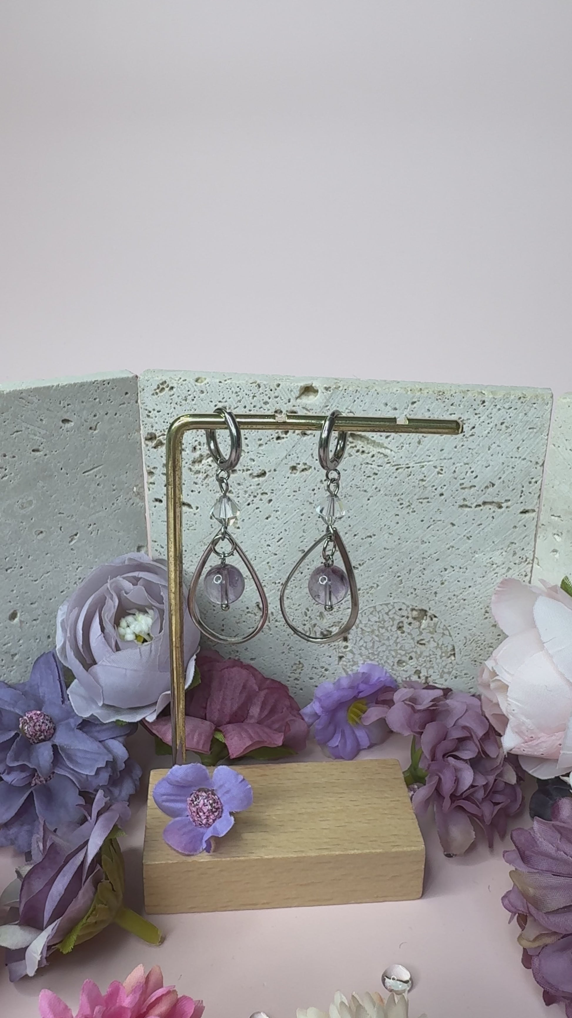 Nämä herkän säihkyvät korvakorut on valmistettu aidosta, läpikuultavan laventelisävyisestä ametistista ja kirkkaasta Swarovski-kristallista.