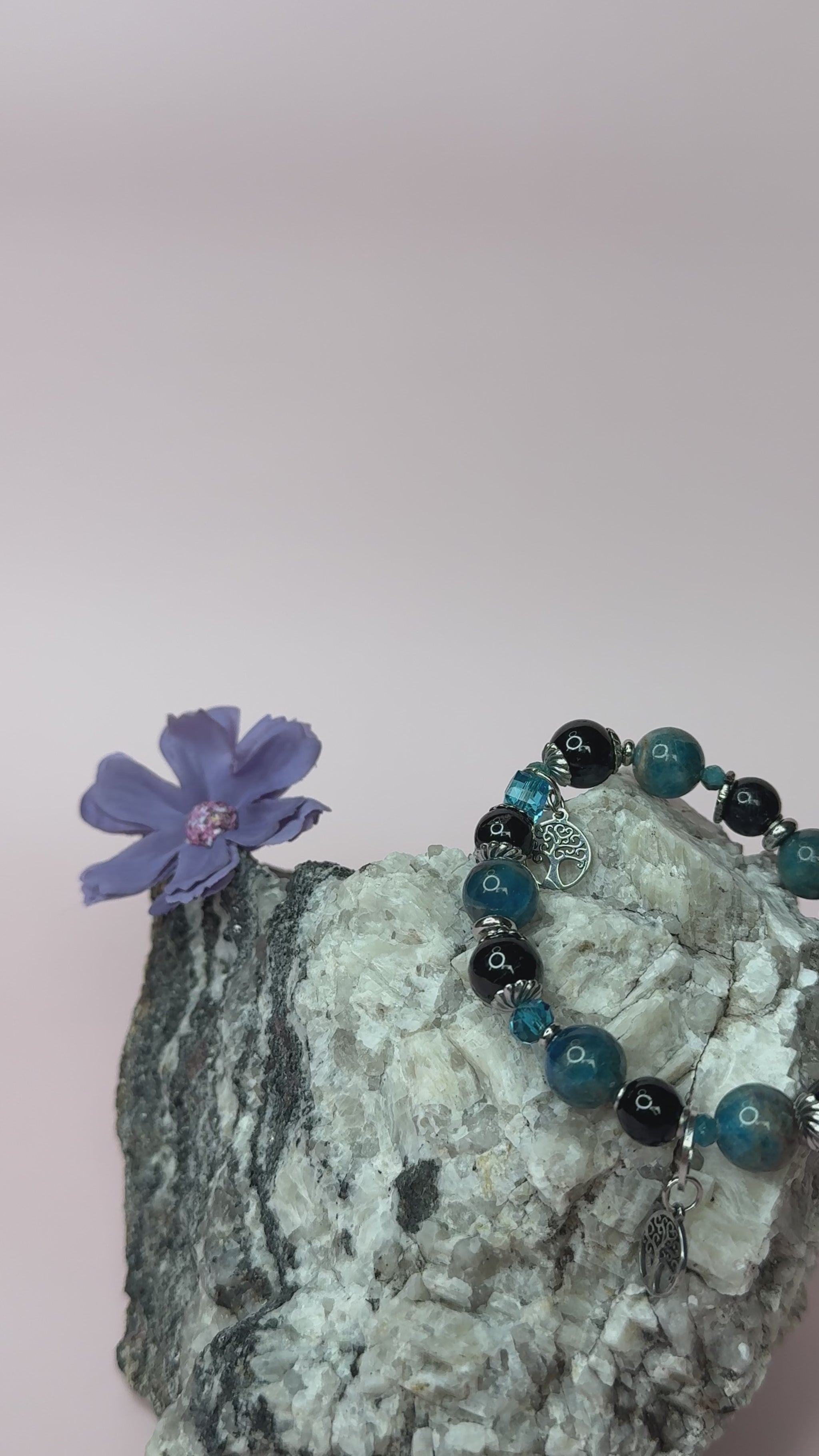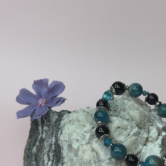 Apatitti tukee henkistä selkeyttä ja keskittymistä, kun taas musta turmaliini suojaa ja maadoittaa energiaa.