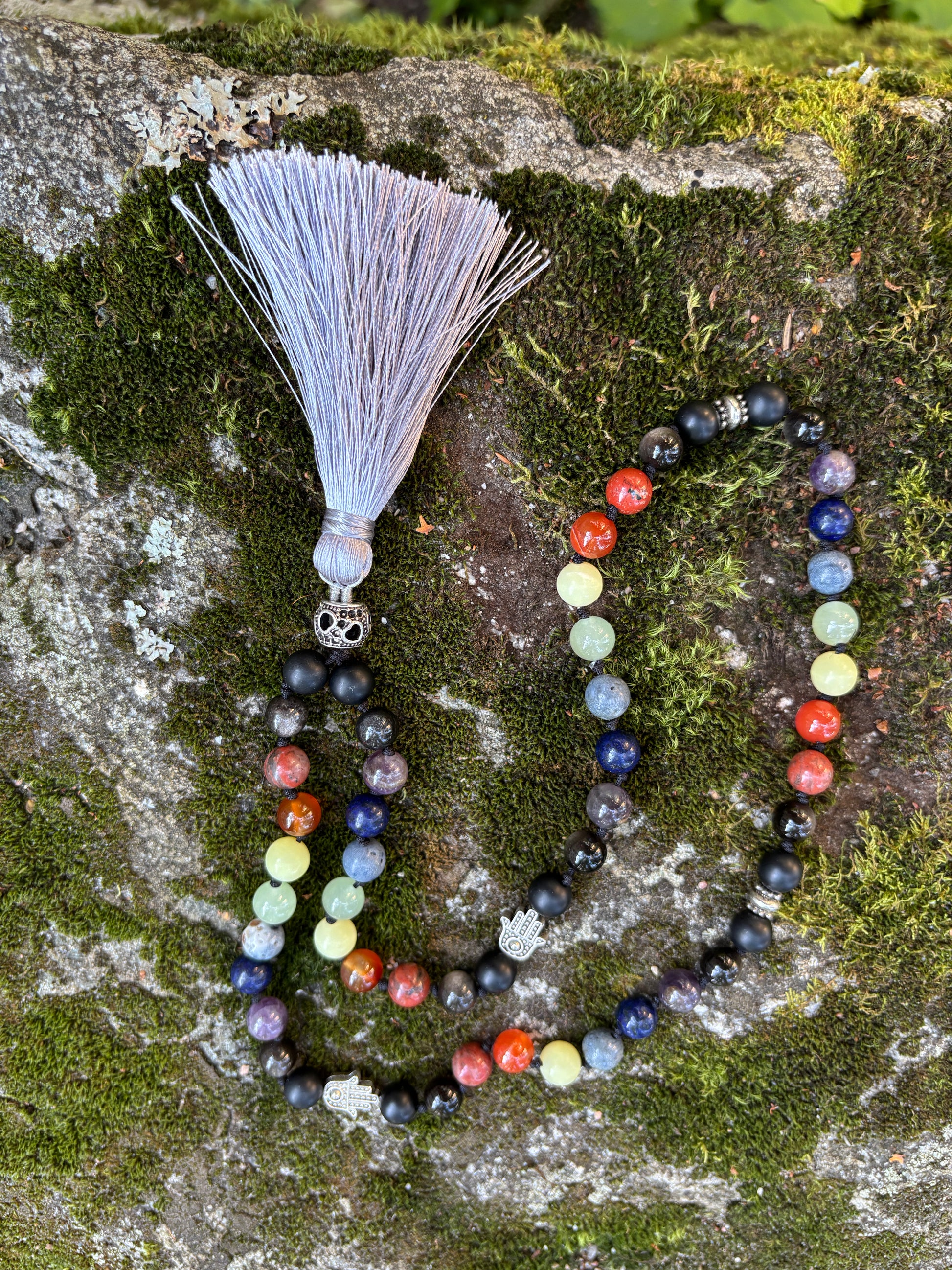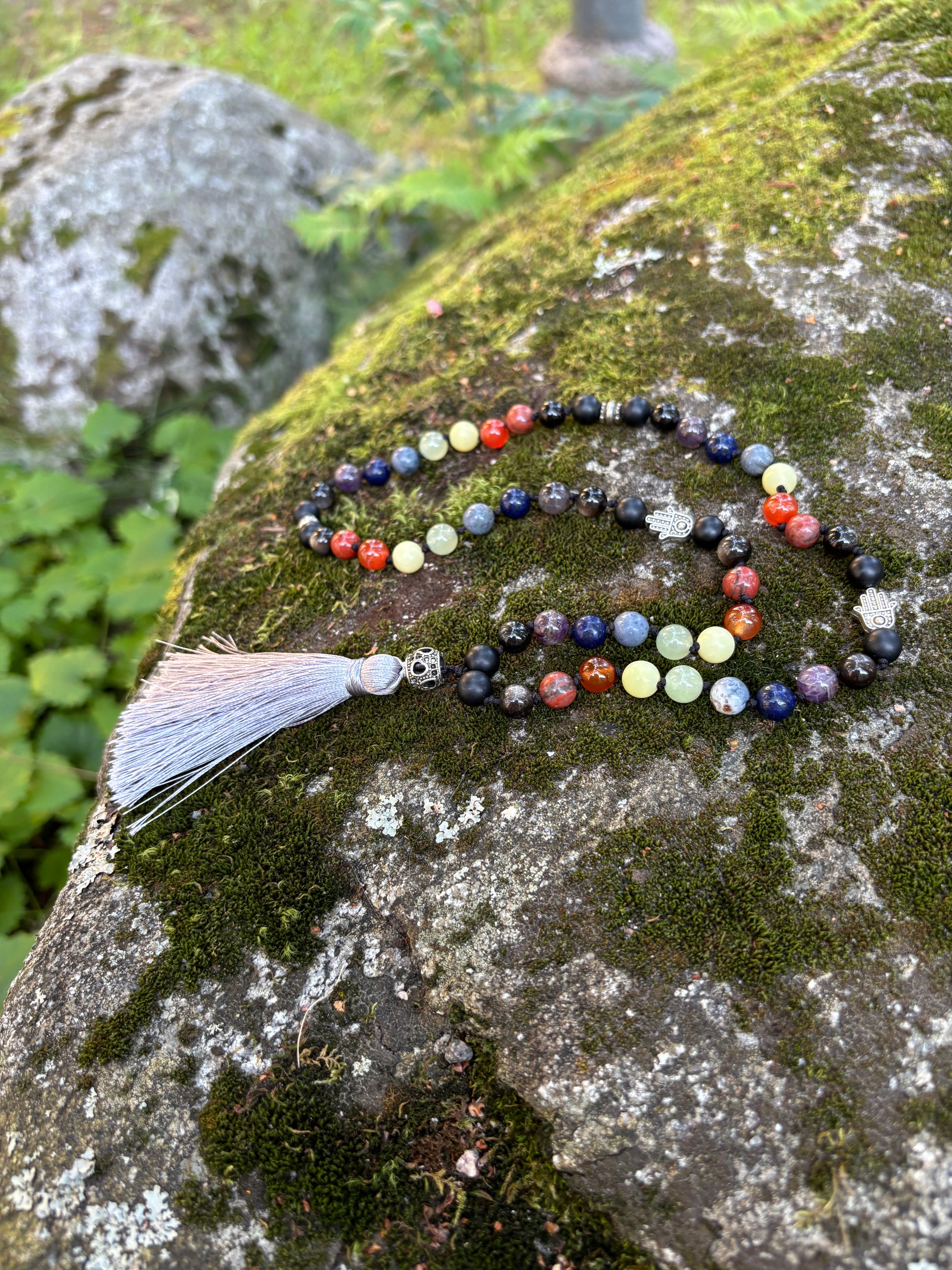 #chakra #mala #chakrakoru #vedakoru #energiakorut #kristallikoru #luonnonkivet #henkisyys #meditaatiokoru #hamsa #gemstonemala #chakrajewelry #чакры #мала #четки #украшениядаркри #darkrijewelry