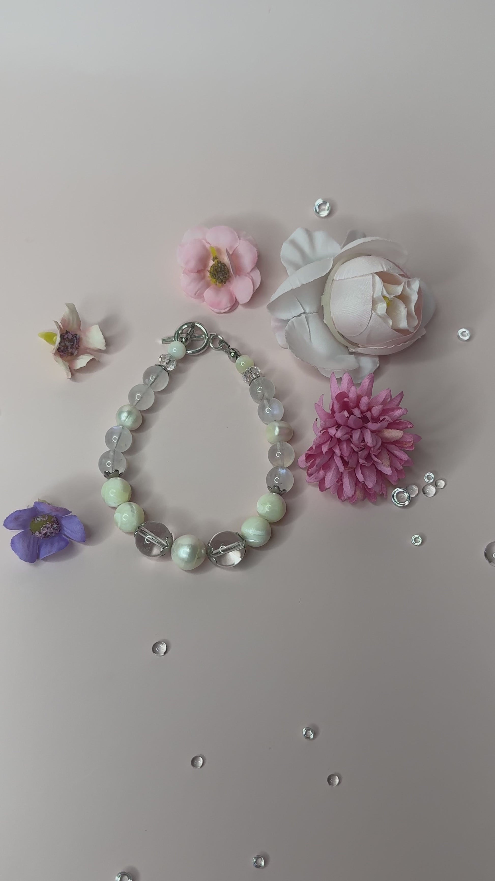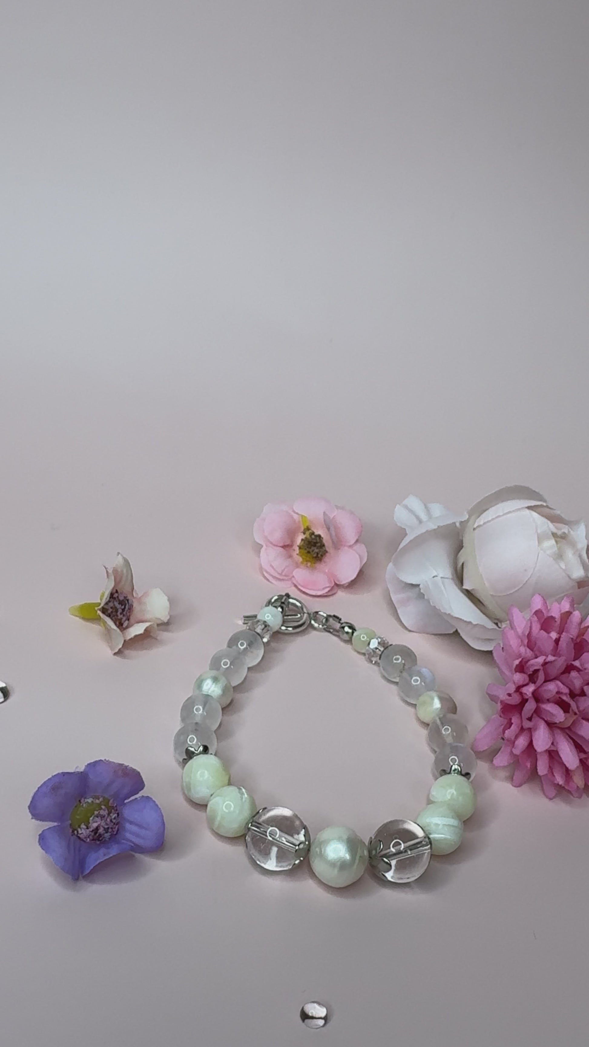 Tämä rannekoru on kuin aamuvalo iholla — kirkas, rauhallinen ja lempeä.